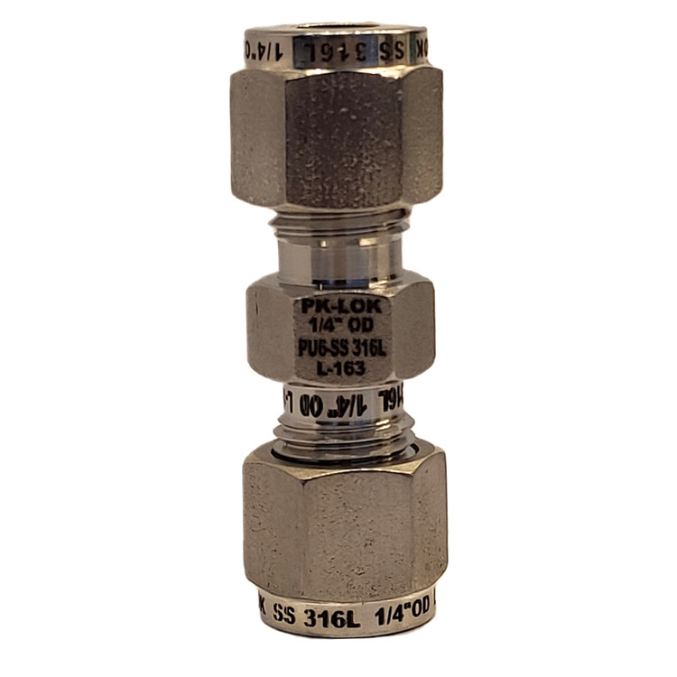 متریال مهره ماسوره (Union) برند پی کی لوک (PK-LOK) سایز 1/4 اینچ (OD) معمولا در محصولات ساخت کشور هند استنلس استیل گرید 304 و در محصولات ساخت کره جنوبی و اروپا و آمریکا استنلس استیل گرید 316 میباشد.
